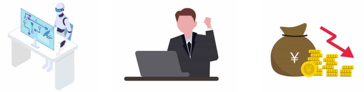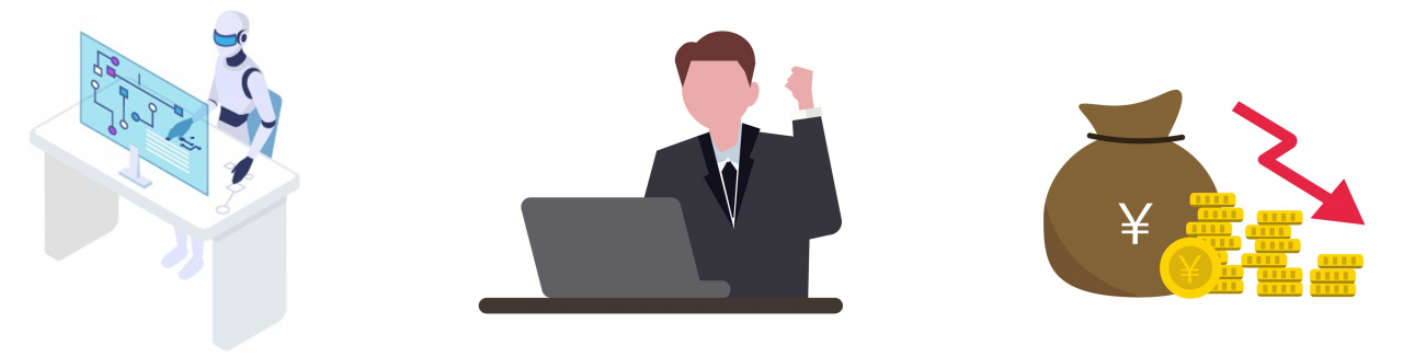 ・単純な業務は全部ロボットにお任せ! ・素早く正確に!ミス・手戻りゼロ!空いた時間は別の仕事を! ・残業のコスト削減!